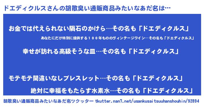 | 女子向けラノベタイトル風あだ名 | 『ドエディクルスの雑貨屋さん』 |