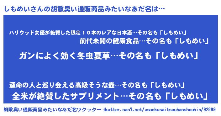 | 女子向けラノベタイトル風あだ名 | 『しもめいなんてお断りですっ。』 |