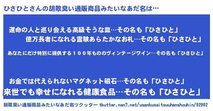 | 意味不明あだ名 | 『住所不定無職ひさひと(2歳)』 |