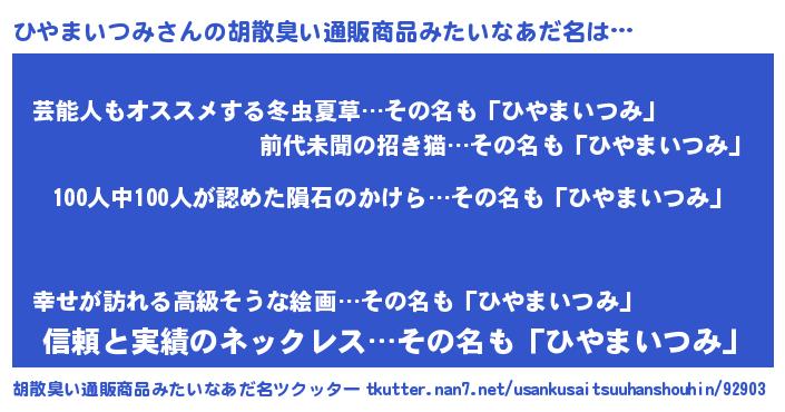 | ヘコむあだ名 | 『ひやぷりん』『ひやまいつみ(遠い目)』 |