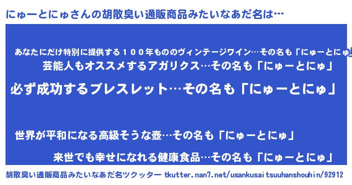 にゅーとにゅさんの胡散臭い通販商品みたいなあだ名をツクッター!