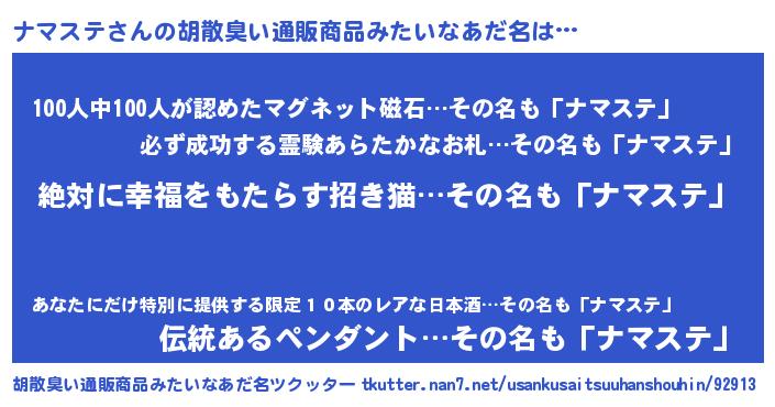 | ヒーロー風カッコイイあだ名 | 『ネオナマステ』『天空の使者ナマステ』 |