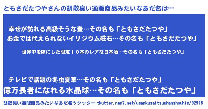 | 意味不明あだ名 | 『住所不定無職ともさだたつや(68歳)』 |