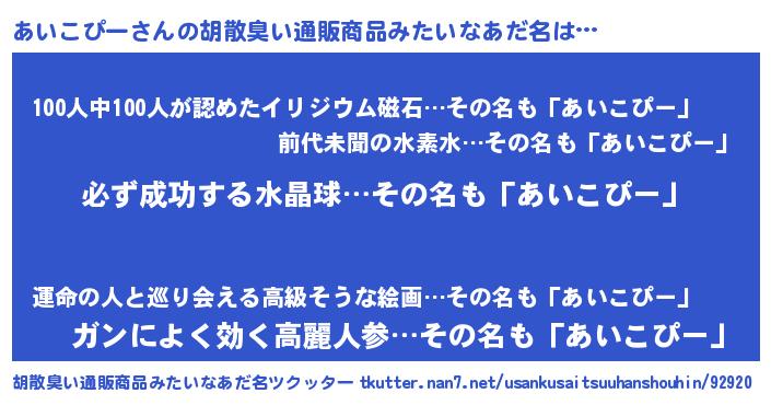 | ヘコむあだ名 | 『あいにゅー』『あいこぴー(遠い目)』 |