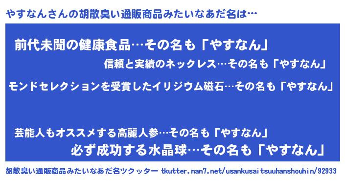 | ヘコむあだ名 | 『やすなん(笑)』『やすもー』 |