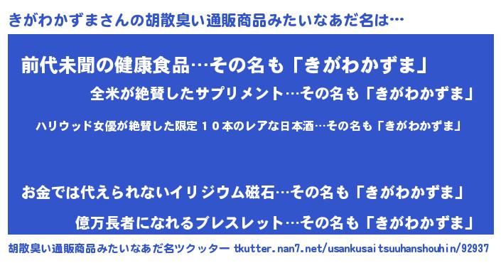 | ヘコむあだ名 | 『きがわかずま(笑)』『きがもー』 |