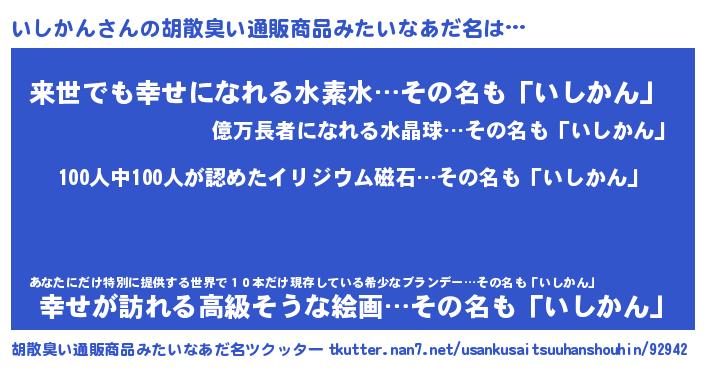 | ヘコむあだ名 | 『いしかん(爆)』『豆乳』『いしにー』 |