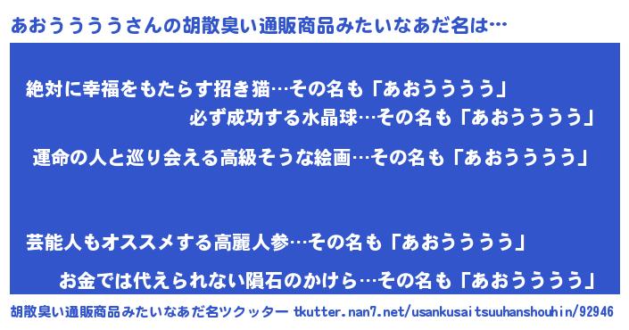 | ヒーロー風カッコイイあだ名 | 『ウルトラあおううううマン』 |