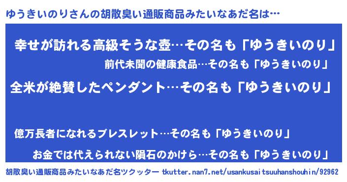 | 意味不明あだ名 | 『とにかく怪しいゆうきいのり』 |