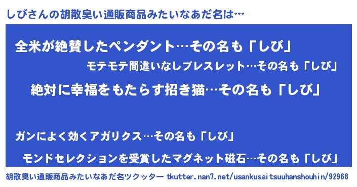 | ピコ太郎風あだ名 | 『ピコシ郎』『シビ十郎』『シシ太郎』 |