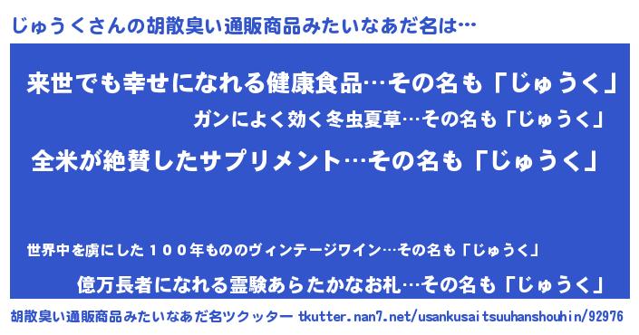 | 意味不明あだ名 | 『とにかく怪しいじゅうく』 |