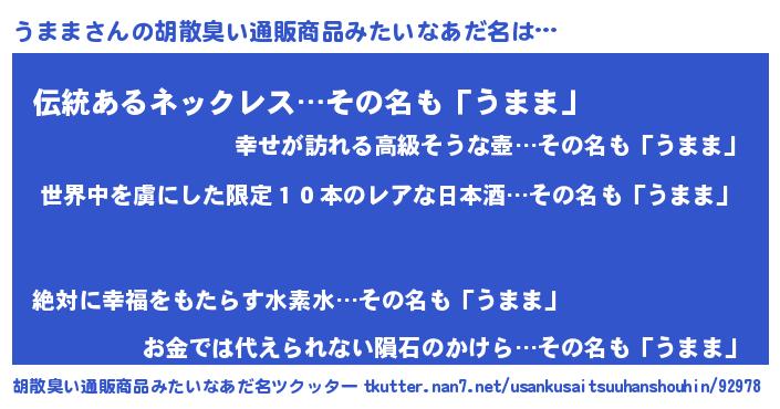 | ピコ太郎風あだ名 | 『ウマ二郎』『ウウ太郎』『ピウ四郎』 |