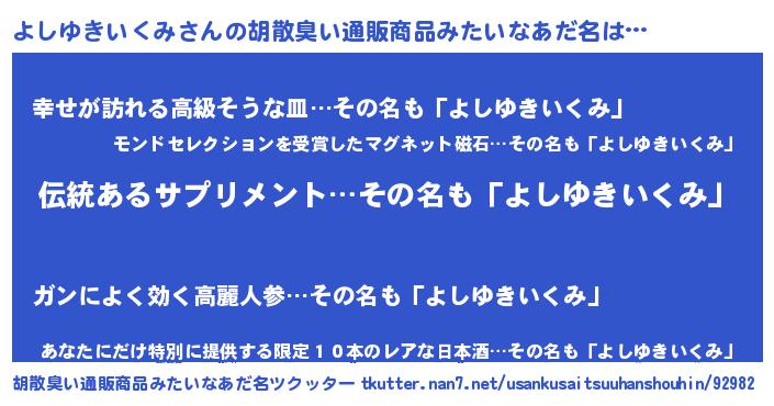 | 意味不明あだ名 | 『とにかく怪しいよしゆきいくみ』 |