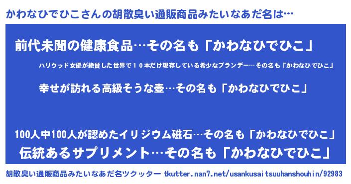 | 伝説のあだ名 | 『秘められし忍者かわなひでひこ』 |