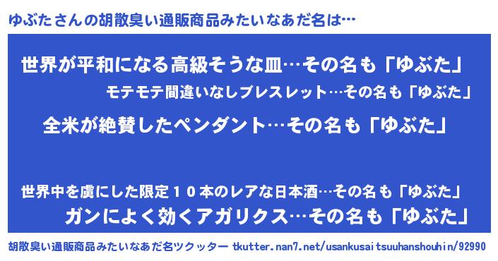 | ヘコむあだ名 | 『ゆぶぷりん』『牛乳』『ゆぶにー』 |