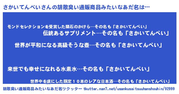 | 男性向けラノベタイトル風あだ名 | 『はたらくさかいてんぺいさま!』 |