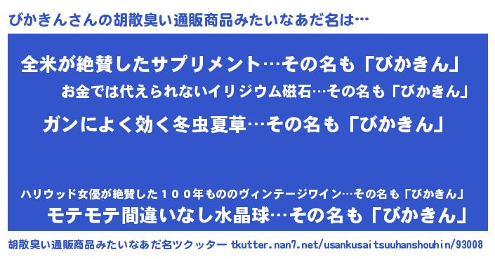 | 意味不明あだ名 | 『自称びかきん』『ペロリンびかきん』 |