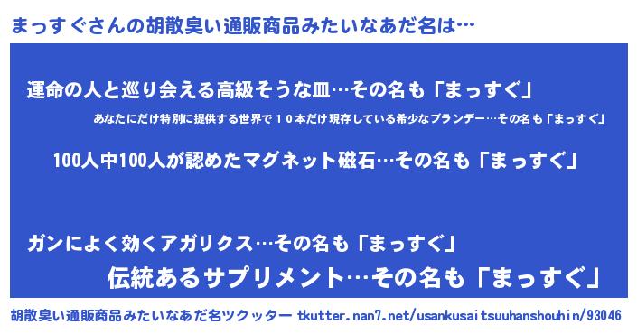 まっすぐさんの胡散臭い通販商品みたいなあだ名をツクッター!