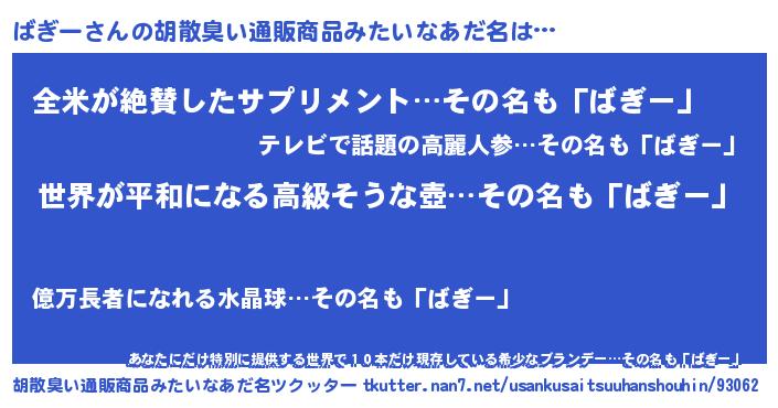| 肩書あだ名 | 『ばぎー大統領』『ばぎー船長』 |