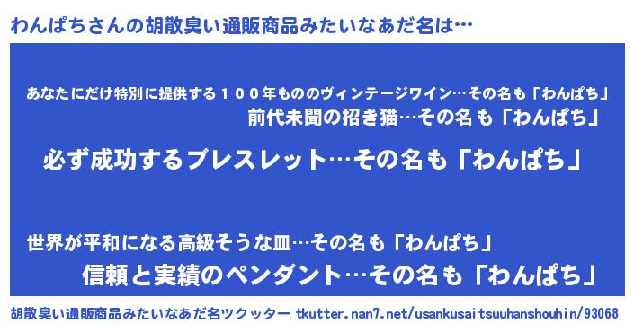 | 意味不明あだ名 | 『ペロリンわんぱち』『永久保存わんぱち』 |