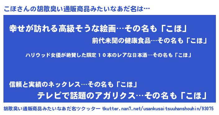 | 恥ずかしいあだ名 | 『こほっちょ』『コホデラックス』 |