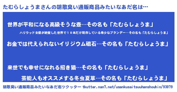 | ヒーロー風カッコイイあだ名 | 『慈愛の使者たむらしょうま』 |