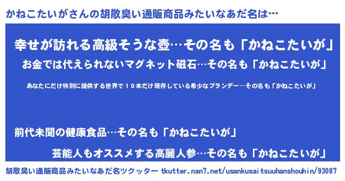 | 意味不明あだ名 | 『住所不定無職かねこたいが(95歳)』 |