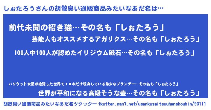 | 意味不明あだ名 | 『眠気覚ましガムしぉたろう味』 |