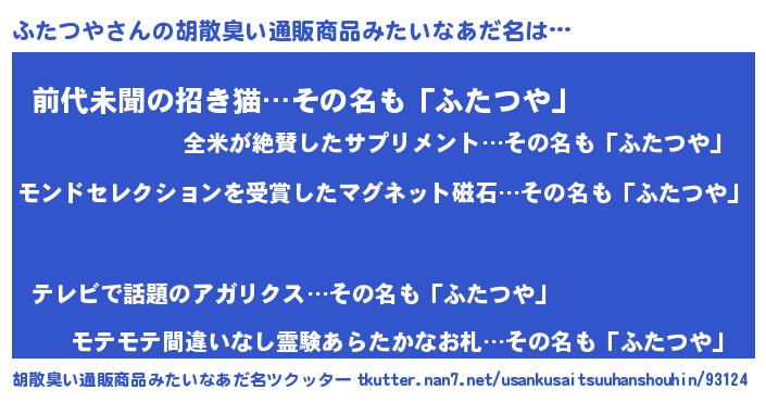 | ヒーロー風カッコイイあだ名 | 『慈愛の使者ふたつや』『ネオフタツヤ』 |