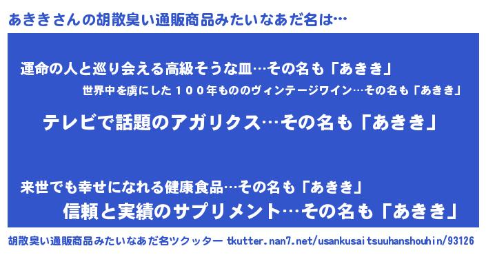 | ヘコむあだ名 | 『豆乳』『あきお』『あきき(笑)』 |