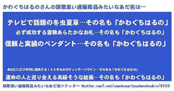 | 意味不明あだ名 | 『とにかく怪しいかわぐちはるの』 |
