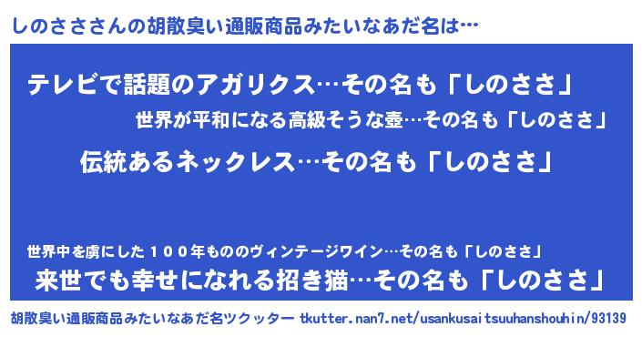 | 意味不明あだ名 | 『とにかく怪しいしのささ』 |