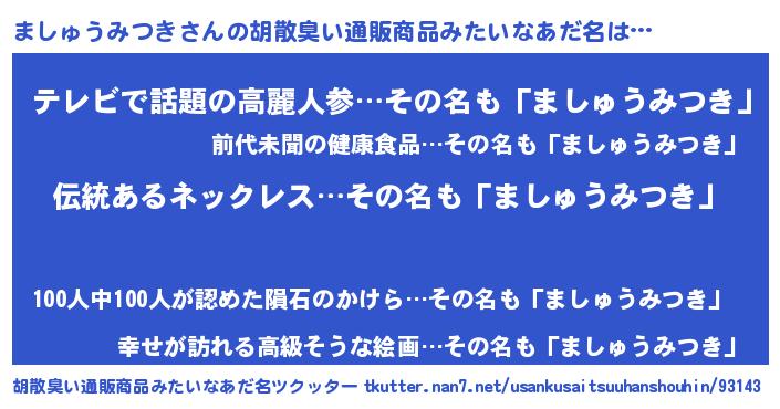 | 意味不明あだ名 | 『とにかく怪しいましゅうみつき』 |