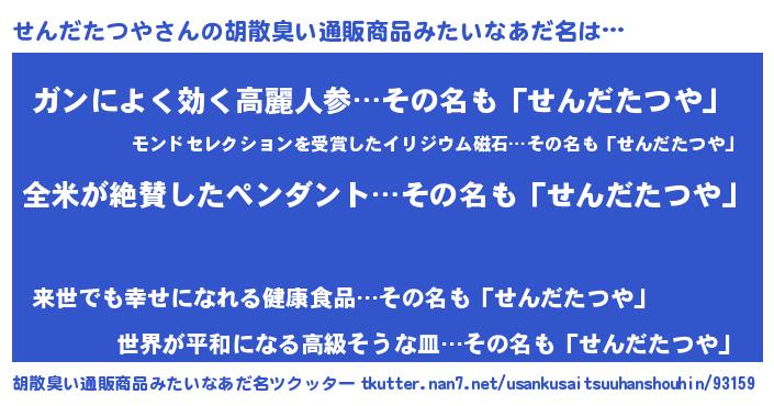 | 男性向けラノベタイトル風あだ名 | 『せんだたつやの嫁は女の子じゃないと思った?』 |