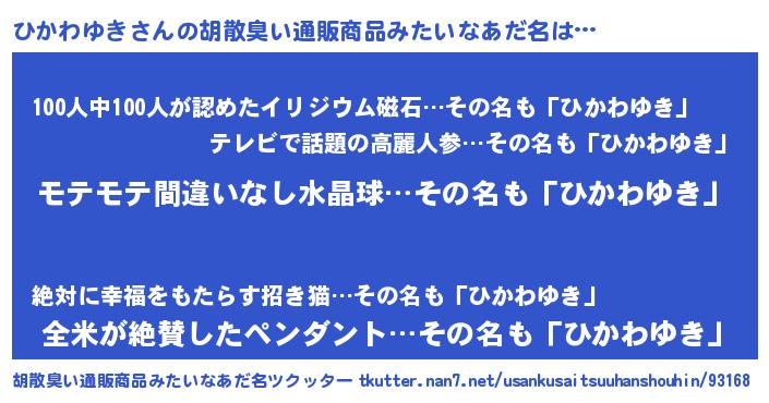 | 意味不明あだ名 | 『ペロリンひかわゆき』『自称ひかわゆき』 |