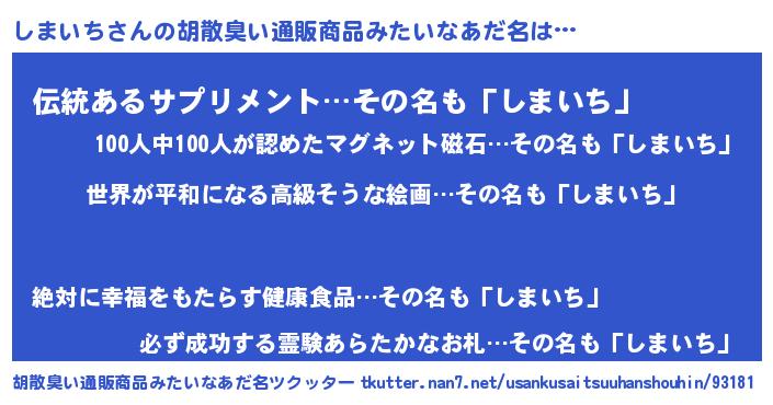 | 意味不明あだ名 | 『しまいちフォーエバー』 |