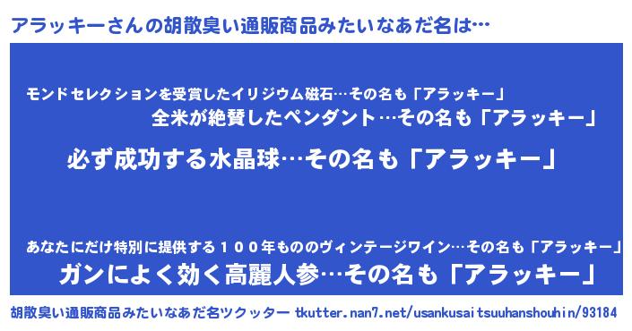 | ヘコむあだ名 | 『アラにゅー』『アラ太郎』『牛乳』 |