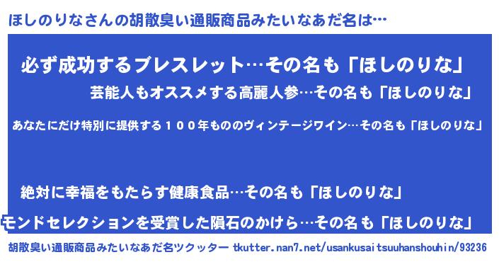 | 意味不明あだ名 | 『ニラ科ほしのりな属』『自称ほしのりな』 |