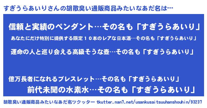| 意味不明あだ名 | 『すぎうらあいりフォーエバー』 |