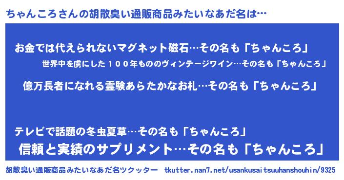 | ヒーロー風カッコイイあだ名 | 『スーパーチャンコロ』『暗黒騎士チャ』 |