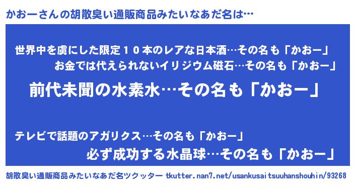 | ヘコむあだ名 | 『かおー(苦笑)』『かおもー』 |