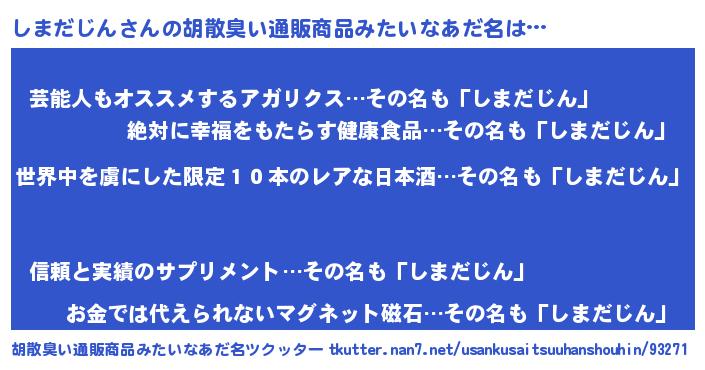 | 意味不明あだ名 | 『住所不定無職しまだじん(43歳)』 |