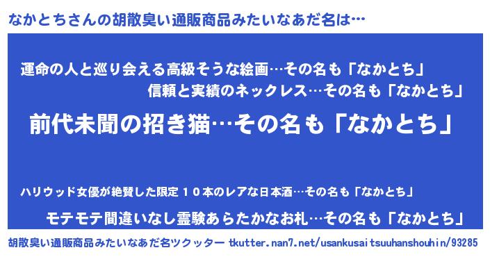 | 意味不明あだ名 | 『永久保存なかとち』『ペロリンなかとち』 |