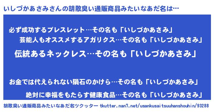 | 意味不明あだ名 | 『とにかく怪しいいしづかあさみ』 |