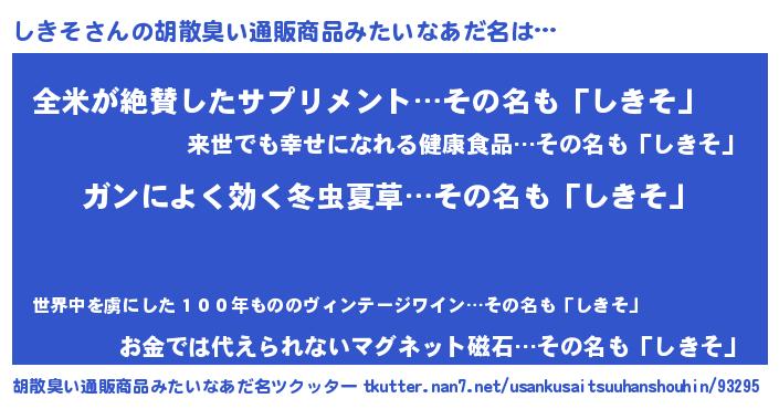| ヘコむあだ名 | 『しきぷりん』『しきそ(苦笑)』 |