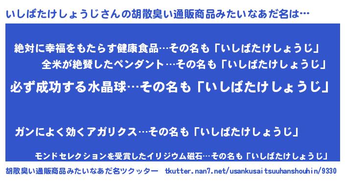 | 男性向けラノベタイトル風あだ名 | 『いしばたけしょうじの憂鬱』 |