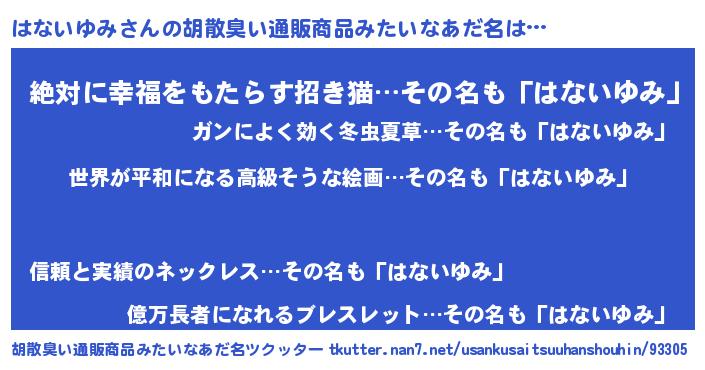 はないゆみさんの胡散臭い通販商品みたいなあだ名をツクッター!