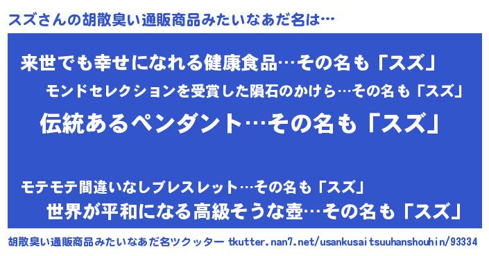 | ヘコむあだ名 | 『スズぷりん』『スズ(笑)』 |