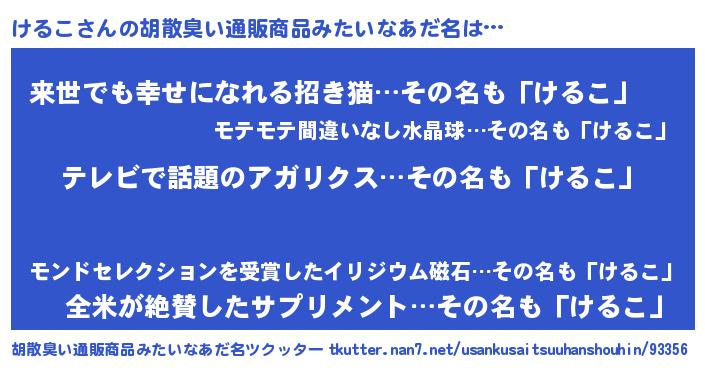 | ヘコむあだ名 | 『けるこ(爆)』『けるぷりん』 |