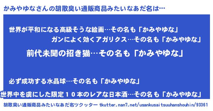 | 意味不明あだ名 | 『永久保存かみやゆな』『自称かみやゆな』 |